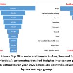 Globally, cancers of the trachea, bronchus, and lung are among the most common and are leading contributors to cancer mortality, particularly among males.10 In contrast, breast cancer remains the most prevalent cancer among females and a significant cause of cancer-related deaths (Fig.2).11 Asia, home to a substantial portion of the global population, bears the highest cancer burden (Fig.1). It accounts for a significant share of global cancer cases and deaths, with lung cancer leading as the primary cause of mortality in males and breast cancer ranking highest in incidence among females (Fig.3).10,11