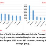 In India, the trends align with these broader patterns, with breast cancer being the most common and fatal cancer among females. For males, lip and oral cavity cancers contribute significantly to the national cancer burden (Fig.4).10,11 These variations emphasize the importance of tailored public health strategies to address specific cancer types within distinct demographic and geographic contexts.