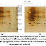 Figure 1: Representation of 2D gel electrophoresis images of maize hybrids (a) GC control gel and (b) GT treated with NaCl. |