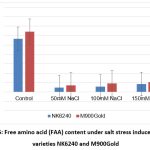 Graph 5: Free amino acid (FAA) content under salt stress induced maize varieties NK6240 and M900Gold |