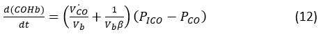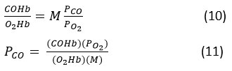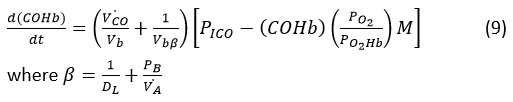 “Calculating the alveolar fractional pressure of CO (PA CO) necessitates the development of a mathematical model to determine concentration of carbon monoxide levels in blood based on exposure time and atmospheric CO concentration.19