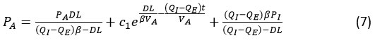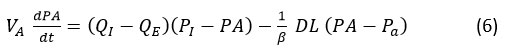 For equation (7) derived the graph for the carbon monoxide volume in alveoli compartment, it depends on the carbon monoxide partial pressure in the alveoli.