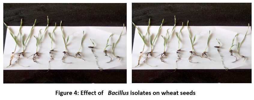 Figure 4: Effect of Bacillus isolates on wheat seeds |