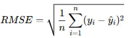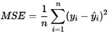 where 𝑦𝑖 is the actual value, 𝑦i^ is the predicted value, and 𝑛 is the number of observations.
