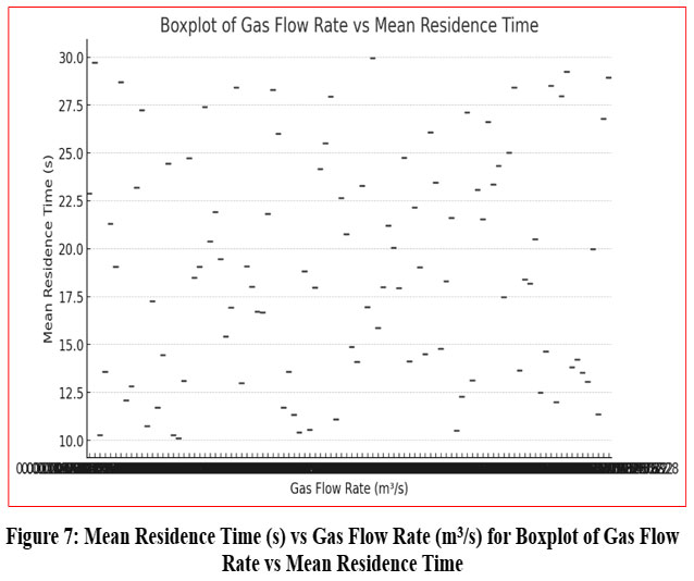 Figure 7: Mean Residence Time (s) vs Gas Flow Rate (m3/s) for Boxplot of Gas Flow Rate vs Mean Residence Time |