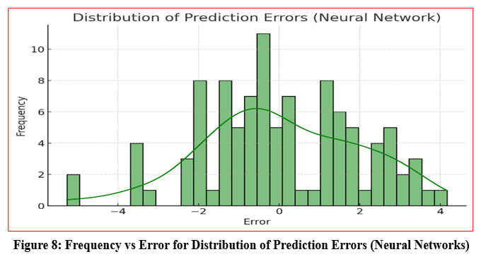 Figure 8: Frequency vs Error for Distribution of Prediction Errors (Neural Networks) |