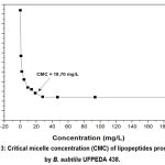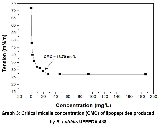 Graph 3: Critical micelle concentration (CMC) of lipopeptides produced by B. subtilis UFPEDA 438. |