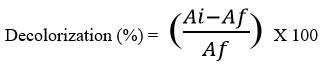 FeNPs were evaluated for dye degradation efficacy using Methylene Blue, Fast Green, and Congo Red dyes. Dye solutions (10 mg/L) were prepared, and FeNPs (10 mg) were added under sunlight exposure. The absorbance of the samples was recorded at different time intervals (0, 30, 60, 90 minutes) using a UV-Vis spectrophotometer.8 Decolorization efficiency was calculated using the formula: