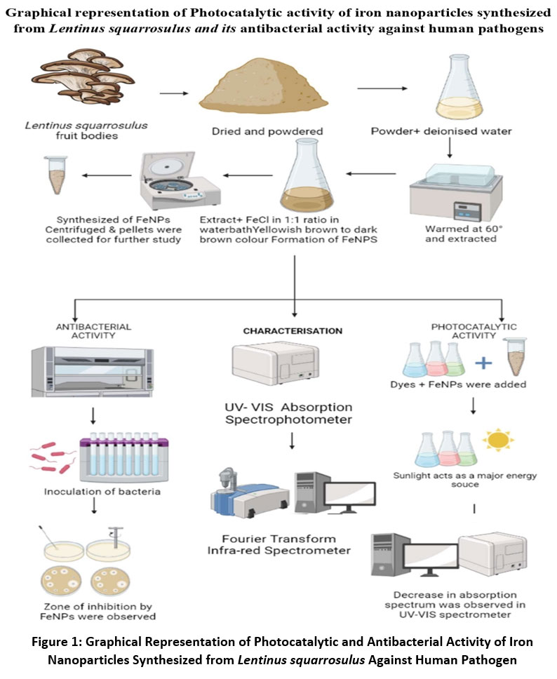 Figure 1: Graphical Representation of Photocatalytic and Antibacterial Activity of Iron Nanoparticles Synthesized from Lentinus squarrosulus Against Human Pathogen |