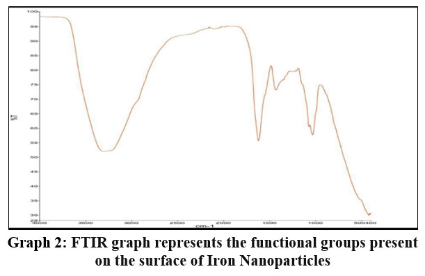 Graph 2: FTIR graph represents the functional groups present on the surface of Iron Nanoparticles |