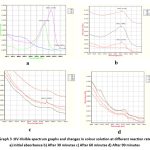 Graph 3: UV-Visible spectrum graphs and changes in colour solution at different reaction rate a) initial absorbance b) After 30 minutes c) After 60 minutes d) After 90 minutes. |