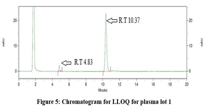 Figure 5: Chromatogram for LLOQ for plasma lot 1 |