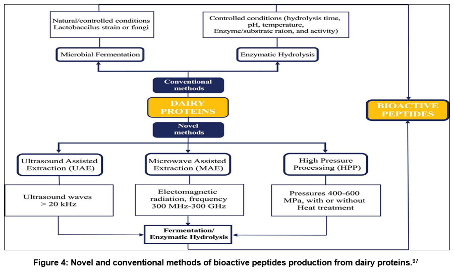 Figure 4: Novel and conventional methods of bioactive peptides production from dairy proteins.97 |
