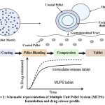 Figure 2: Schematic representation of Multiple Unit Pellet System (MUPS) tablet formulation and drug release profile. |