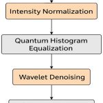 where, Imax, Imin represents minimum and maximum HU values in the DICOM input image. This method ensures greater consistency in greyscale representations across datasets which is highly essential for downstream quantum encoding. In order to improve the contrast between the healthy and malignant tissues in DICOM, QHE (Quantum Histogram Equalization) is adopted by using Hadamard-based encoding. Here, image data is mapped into QSV (Quantum State Vector) ψ, the Equation 2 is expressed as,