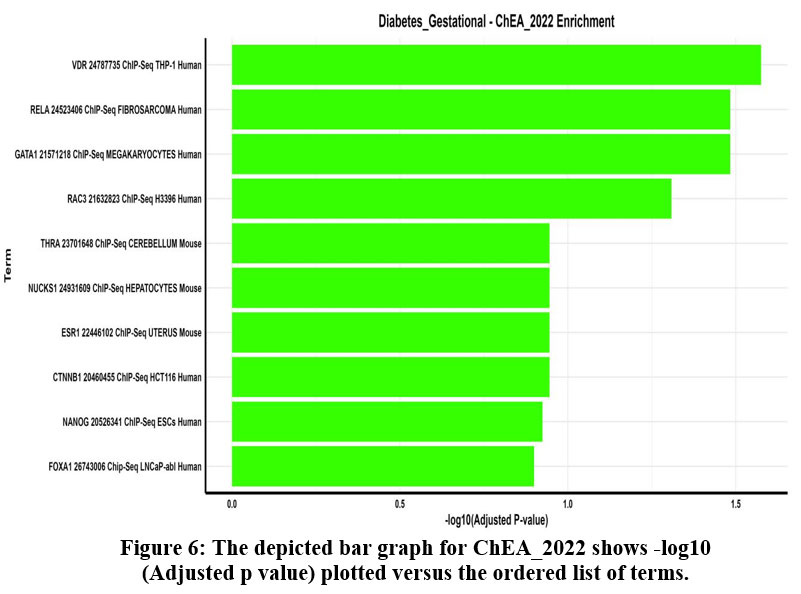 Emergent tools such as ChEA_2022 facilitated identification of transcription factors by experimental data, and TargetScan_microRNA_2017 predicted microRNA targets of regulation. The multi-layered analysis shed light on the transcriptional and post-transcriptional regulatory interactions possibly affecting gestational diabetes.