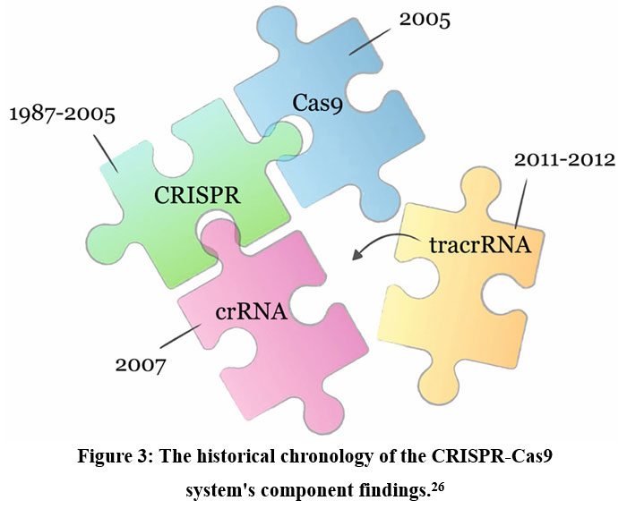 Figure 3: The historical chronology of the CRISPR-Cas9 system’s component findings.26 |