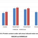 Graph 6 : Protein content under salt stress induced maize varieties NK6240 and M900Gold |