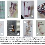 Capsule: Stalked (10 mm long), dark brown, trigonous, measuring approximately 2 mm × 1 mm, with nine ribs. After dehiscence, the valves curve inward (Fig.1D), revealing numerous seeds, about 30 per locule (Fig.1E).