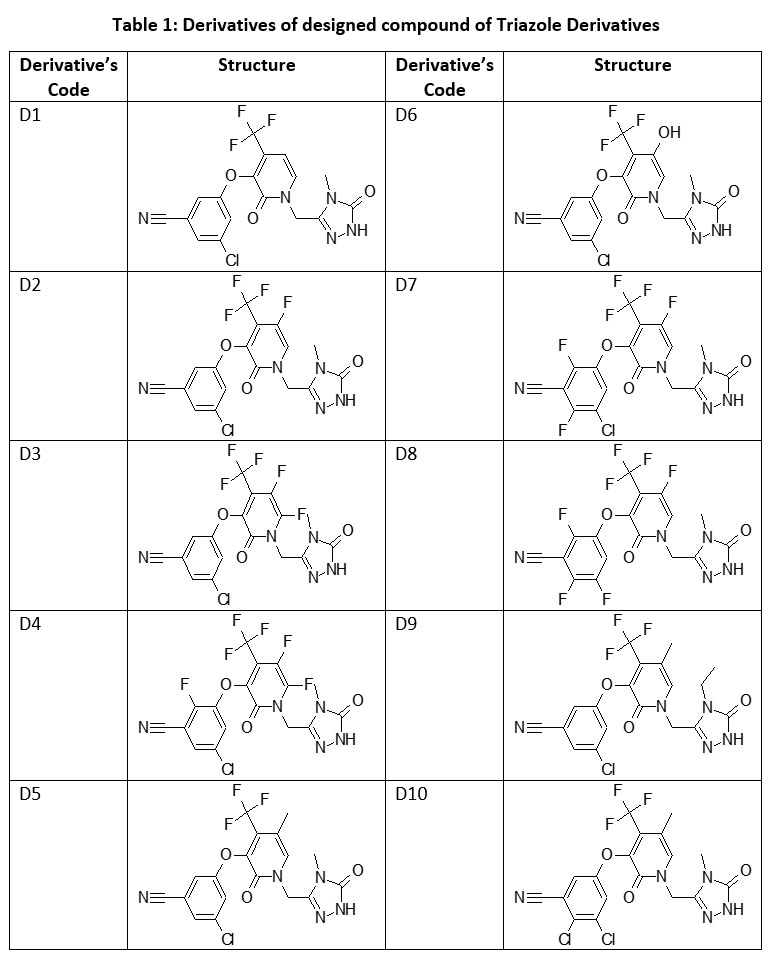 Table 1: Derivativesofdesignedcompound of Triazole DerivativesClick here to view Table |
