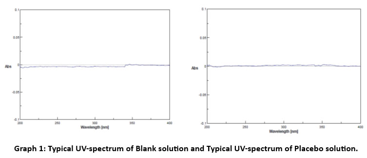 Graph 1: Typical UV-spectrum of Blank solution and Typical UV-spectrum of Placebo solution. |